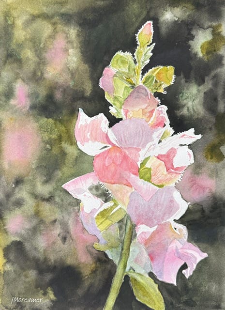 Julie Creamer is a watercolor artist inspired by Minnesota’s landscapes, from the rugged North Shore to the Twin Cities. Working exclusively in watercolor, she embraces the medium’s spontaneity, using bold color to capture movement and joy. Her subjects range from natural forms to elegant antiques — especially antique automobiles — celebrating color, memory, and the richness of her Minnesota home.