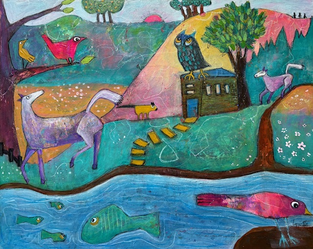 Lynette Beebe creates work that invites joy and emotional openness. Viewers often share that her paintings make them feel happy — a response that mirrors her own creative process. When Lynette paints, she approaches the work intuitively, allowing the medium to guide her rather than forcing an outcome. This openness creates a path she follows toward the subject and its story, making each piece a process of discovery and surprise.