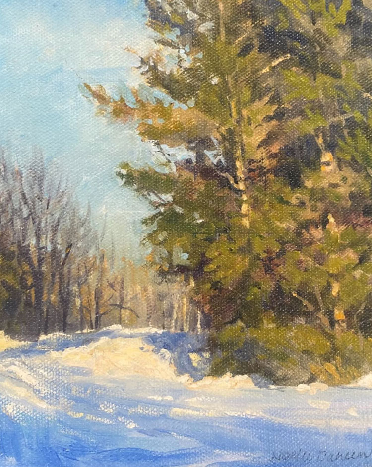 Noelle Dahlen is an oil and pastel painter inspired by the landscapes surrounding her Minnesota home. Her work is known for its sense of tranquility, achieved through simple compositions, limited color palettes, and soft transitions — offering a quiet breath of fresh air in a cluttered world. Often painting outdoors, Noelle views her creative process as a kind of silent prayer, using creeks, rivers, lakes, and open skies to invite viewers on a gentle visual journey.