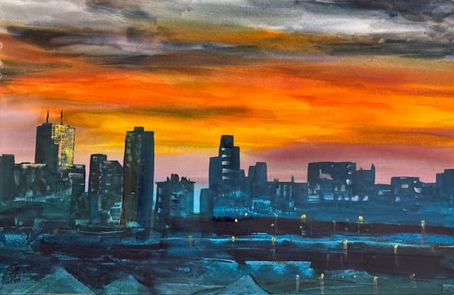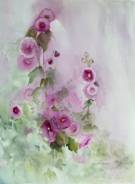 Claudia Hanson is a watercolor artist and teacher whose studies at the University of Minnesota shaped her exploration of acrylic, collage, photography, and mixed media. Working intuitively, she allows each painting to evolve through process and experimentation. From winter outdoor sessions to expressive splashes of paint, her work draws on memory, imagination, and the spirit of the Minnesota landscape.
